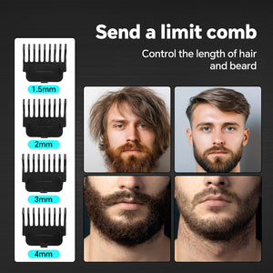 Aparat de Tuns și Contur 2-în-1 cu Ecran Digital, Acumulator, Lame T-Blade, 4 Piepteni Ghidaj