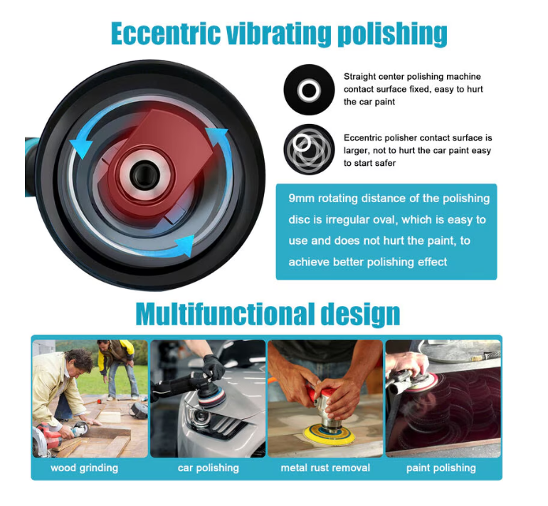 Aparatul de polish auto fără fir este o unealtă portabilă, alimentată de acumulatori de 12V, destinată lustruirii și finisării suprafețelor vopsite. Dispune de viteză variabilă, reglabilă în 8 trepte, între 2500 și 5000 de rotații pe minut, permițând adaptarea la diverse etape ale procesului de lustruire.