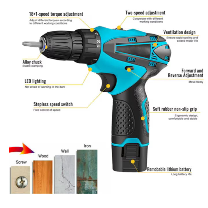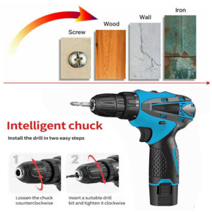Bormașină / Autofiletantă Fără Fir 12V cu 2 Acumulatori și Trusă de 24 Accesorii