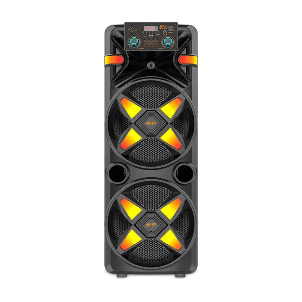 Sistemul audio portabil integrează două difuzoare de 12 inch, generând o putere RMS de 80W (240W P.M.P.O.). Dispozitivul oferă conectivitate Bluetooth 5.0, funcție TWS pentru împerechere stereo și tuner radio FM. Include egalizator, efecte vocale (reverb, delay) și un microfon wireless, fiind optimizat pentru karaoke.