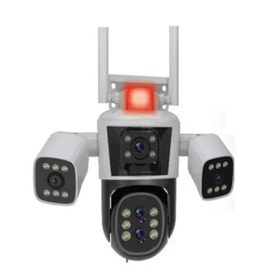 Camera de supraveghere triplă Andowl este destinată monitorizării interioare și exterioare, oferind acoperire panoramică 360° cu 4 lentile și rezoluție 4K HD. Dispune de funcție PTZ (355° orizontal / 180° vertical) și este controlabilă de la distanță prin aplicația NiView.