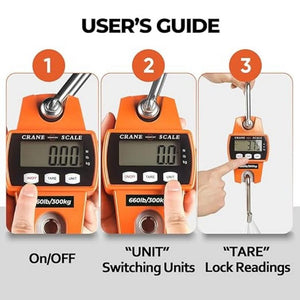 Cântar Digital cu Cârlig, 300 kg, Rezistent la apa,Portabil, Corp din Aluminiu și Ecran Iluminat
