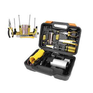 Pachetul include toate accesoriile necesare pentru întreținerea anvelopelor și reparații rapide: