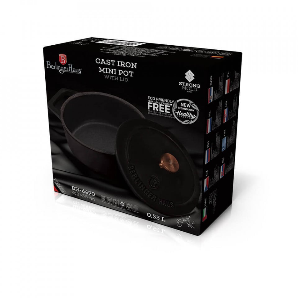 Cratiță din fontă emailată cu capac Ø12 cm – Berlinger Haus BH/6490 Black Rose Collection