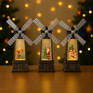 • Figurină decorativă vintage tip moară de vânt cu Moș Crăciun