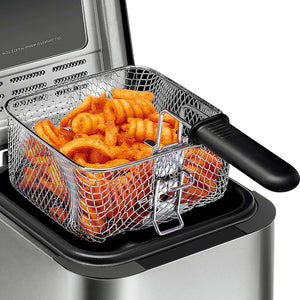 Aparatul are o capacitate de 2.5 litri (aprox. 1.5 kg alimente) și este dotat cu un termostat pentru controlul reglabil al temperaturii, asigurând gătirea uniformă. Vasul interior este detașabil pentru o curățare ușoară. Pentru siguranță, friteuza este echipată cu protecție la supraîncălzire și o bază anti-alunecare.