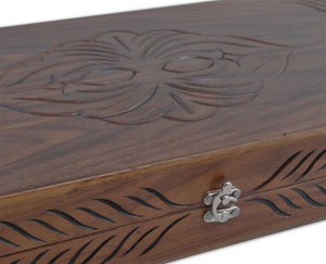 Joc de Table din Lemn Masiv Sculptat Manual, 50x50 cm, Cutie Mare de Arta, Set Clasic cu Puluri si Zaruri, Maro