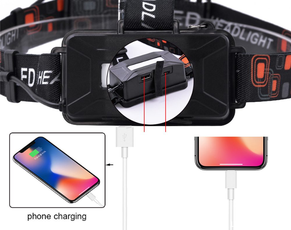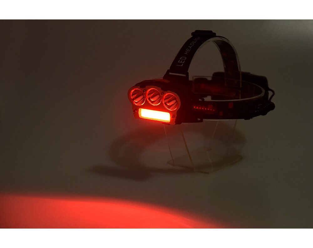 Lanternă Frontală LED Reîncărcabilă cu 2 Acumulatori și 7 Moduri de Iluminare, cu Lumină Roșie