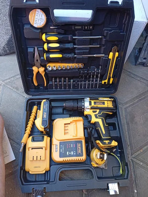 Bormașină de Găurit și Înșurubat cu Percuție, 48V, 500W, 2 Acumulatori + 30 Accesorii