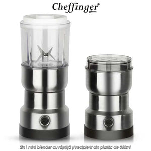 Mini Blender 2 in 1 Cheffinger Home, 300W, cu Rasnita de Cafea Atasabila, Recipient 350ml, Functie Pulse, Baza Inox