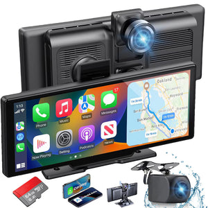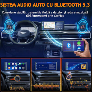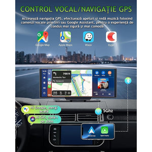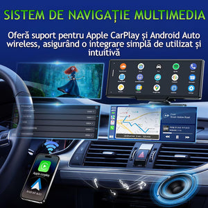 Navigație Auto Universală, Display Touchscreen 10.26”, Wireless CarPlay & Android Auto, Cameră Față 4K + Spate 1080P, Card 64GB