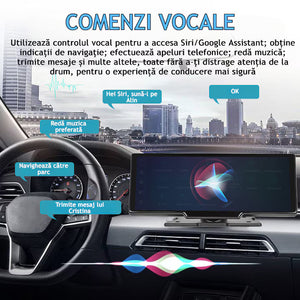 Control Vocal (Siri & Google Assistant): Utilizați comenzi vocale pentru a efectua apeluri, a trimite mesaje, a schimba melodia sau a seta o destinație, permițându-vă să mențineți atenția la drum.