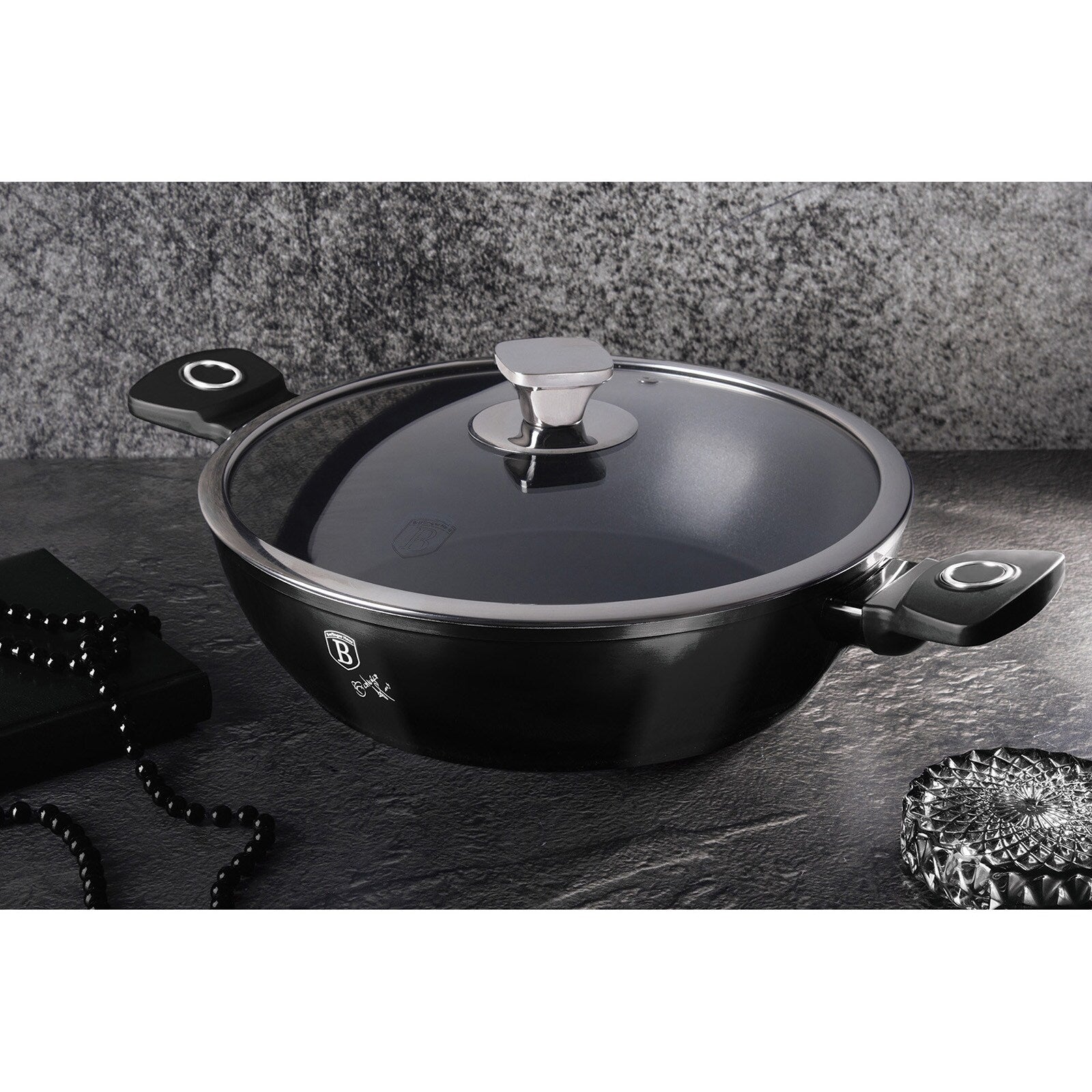 Oală Mică Adâncime cu Capac 28 cm, 3.8L, Aluminiu Forjat, Negru Metalic – Berlinger Haus