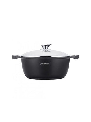 Fabricată din aluminiu de înaltă calitate, oala asigură o distribuție uniformă a căldurii, reducând timpul de gătire și consumul de energie. Interiorul antiaderent permite prepararea alimentelor fără lipire și curățarea rapidă, în timp ce capacul din sticlă termorezistentă oferă vizibilitate completă asupra procesului de gătit.