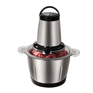 Acest tocător electric este un aparat de bucătărie cu o putere de 250W și un bol de 2 litri, conceput pentru a mărunți și amesteca o varietate de ingrediente. Echipat cu lame din oțel inoxidabil, este capabil să proceseze legume, carne, nuci și include o funcție pentru zdrobirea gheții.