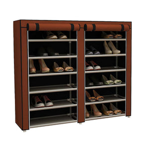 Pantofar Textil cu Husă, 12 Rafturi, 112x106x28 cm - Maro