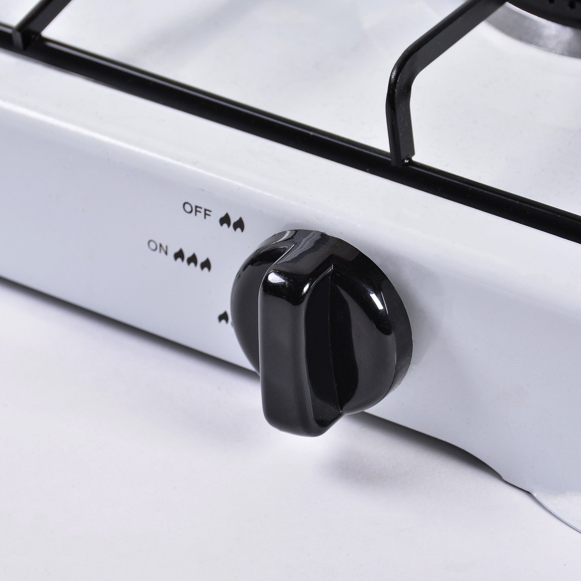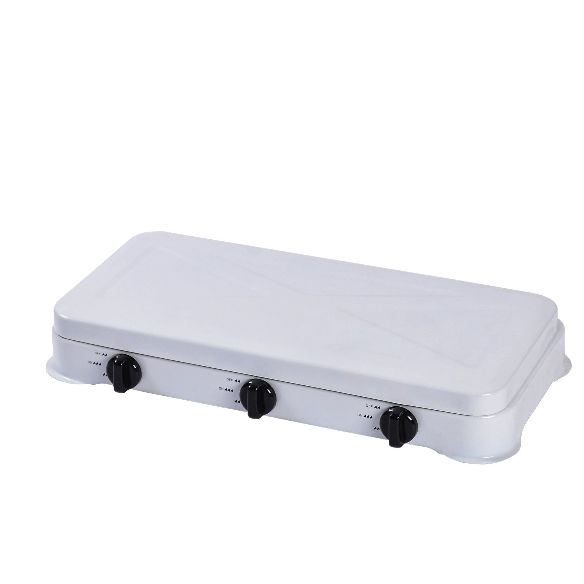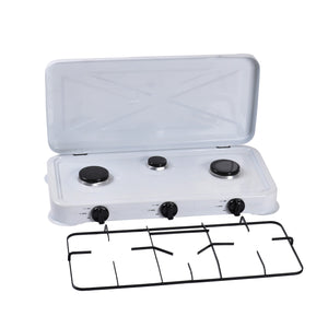 Plită pe Gaz cu 3 Arzatoare pentru Butelie | Aragaz Portabil de Exterior, Oțel Emailat, Alb, 60x30 cm