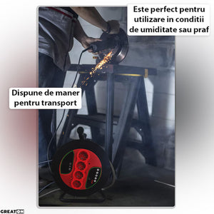 Prelungitor cu Tambur GREATON, 50m, 4 Prize, Cablu 3x2.5 mm², Protecție IP44