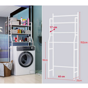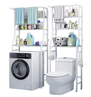 Raft Etajeră Depozitare Baie, 3 Polițe, pentru Mașina de Spălat sau Toaletă, Metalic, 160x65 cm