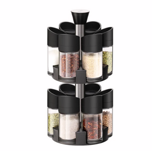 Set 12 recipiente condimente cu suport rotativ 2 etaje și mâner, negru