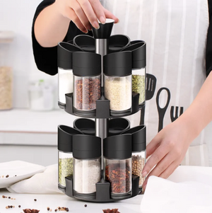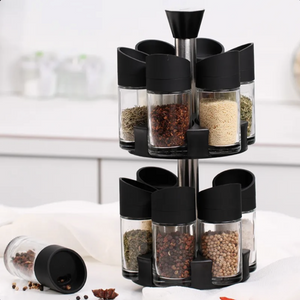 Set 12 Recipiente Condimente cu Suport Rotativ 2 Etaje | Visivo
