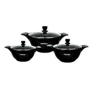 Descoperă echilibrul perfect între eleganță, performanță și durabilitate cu setul de 3 oale marmorate Cheffinger Scop®, un ansamblu premium conceput pentru pasionații de gătit care apreciază calitatea și designul modern.