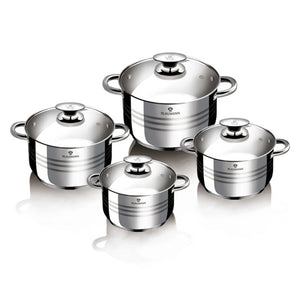 Set cratițe din inox Blaumann BL-3861 – 8 piese cu capace din sticlă (2.1L / 2.9L / 3.9L / 6.5L)