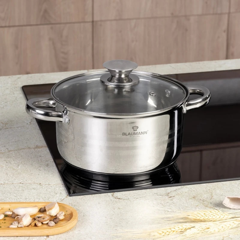 Setul de cratițe din inox Blaumann BL-3861 este alegerea ideală pentru orice bucătărie modernă, combinând durabilitatea oțelului inoxidabil cu un design elegant și funcțional. Conceput pentru a asigura performanță superioară în gătit, acest set oferă distribuție uniformă a căldurii, eficiență energetică și compatibilitate cu toate tipurile de plite, inclusiv cele cu inducție.