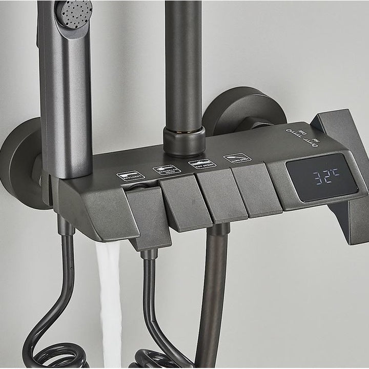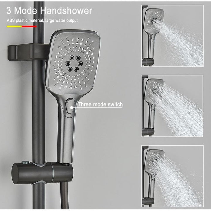 Fabricat din alamă sanitară de înaltă calitate și ABS rezistent, acest sistem combină un design clasic cu tehnologie avansată, oferind o experiență de duș complet personalizată.