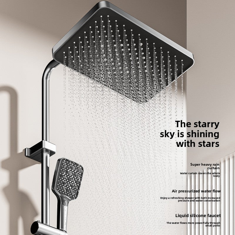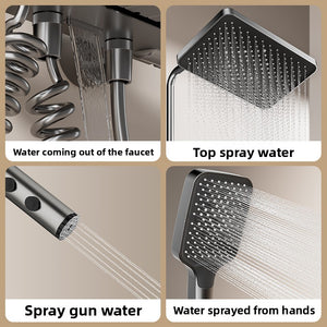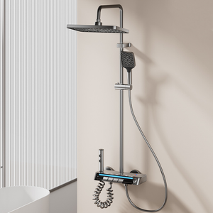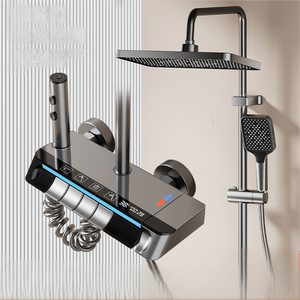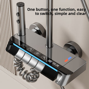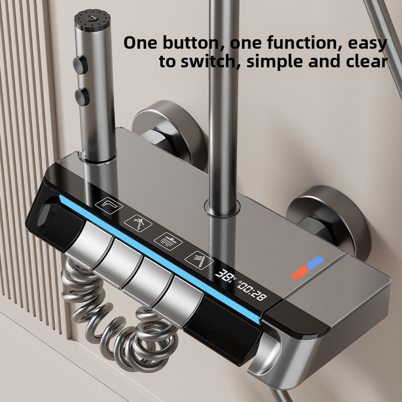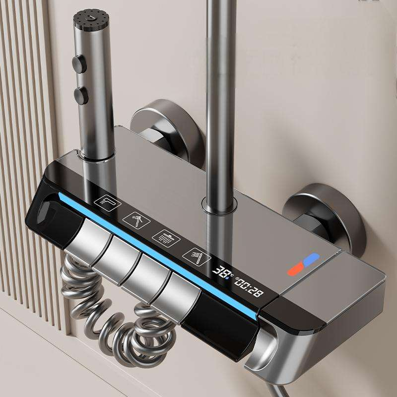 Set de duș inteligent 4 în 1 cu afișaj LED, comenzi tip Piano, termostat și cap rotativ 360°, model HW-085, gri închis, montaj pe perete