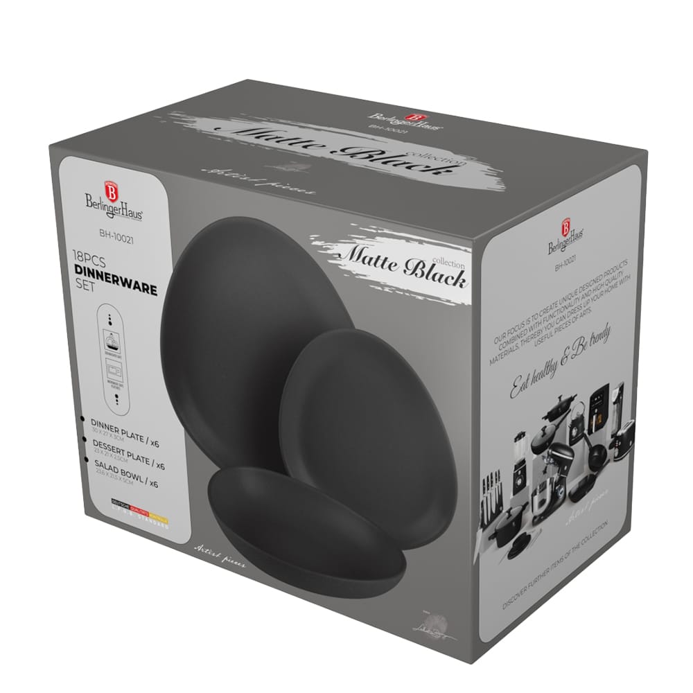 Setul de veselă Berlinger Haus BH 10021 este alegerea perfectă pentru cei care doresc să aducă un aer modern și elegant în servirea mesei. Cu un design îndrăzneț, finisaj mat negru și materiale de cea mai bună calitate, acest set oferă un echilibru impecabil între estetică și funcționalitate.