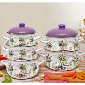 Set 5 oale emailate cu capace Savasan 2.2–6 L – model Lavandă