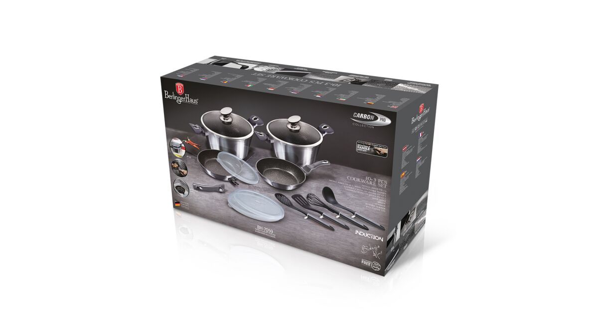Setul de oale marmorate 13 piese Berlinger Haus Carbon Pro reprezintă alegerea ideală pentru bucătăriile moderne.