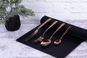 Setul include toate piesele necesare pentru servirea completă a mesei pentru șase persoane și se remarcă prin echilibrul perfect între funcționalitate și estetică. Cu un finisaj rose gold sofisticat, aceste tacâmuri aduc o notă de lux fiecărei mese, fie că este vorba despre o cină festivă sau o masă de zi cu zi.