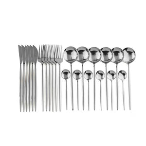 Set Tacâmuri 24 Piese din Inox, Finisaj Lucios, Design Elegant – Pentru 6 Persoane