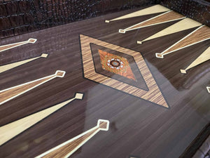Combinația dintre texturile luxoase ale pielii și rezistența lemnului oferă un produs durabil, sofisticat și unic, perfect pentru iubitorii jocurilor de societate sau pentru colecționari.
