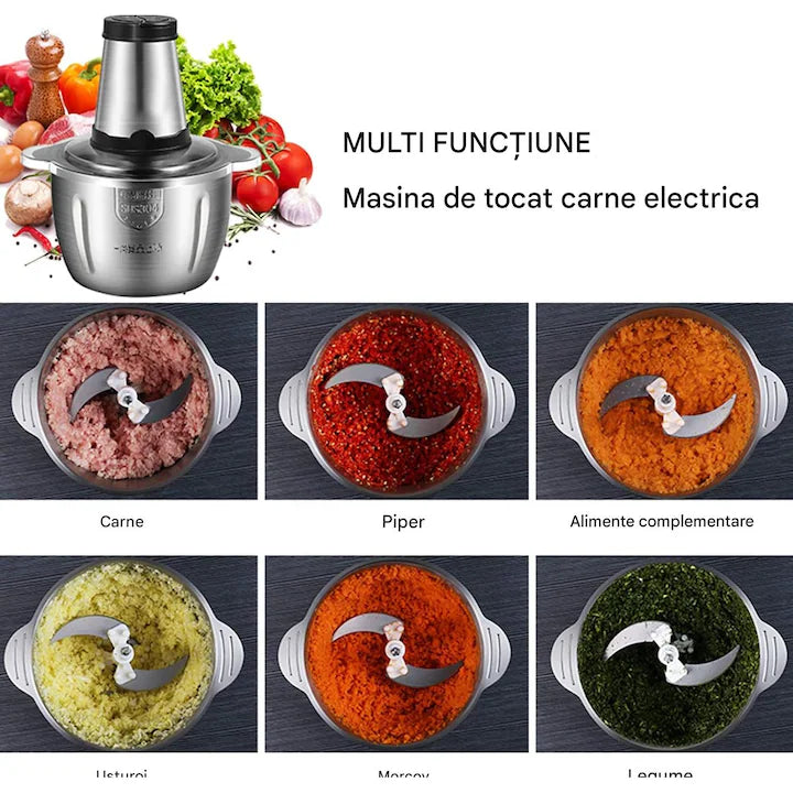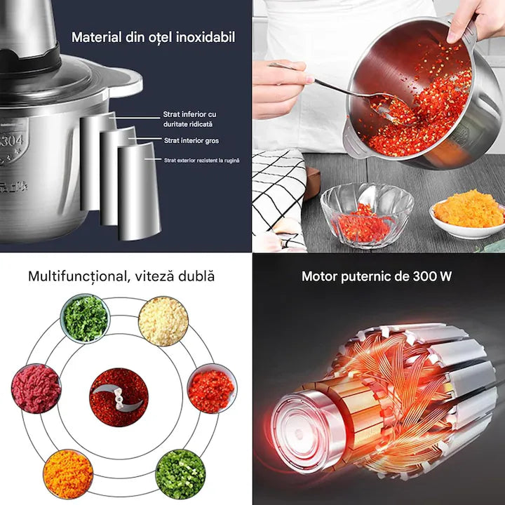 Tocător Electric Multifuncțional 3L, 300W | Robot Bucătărie Inox pentru Carne și Legume