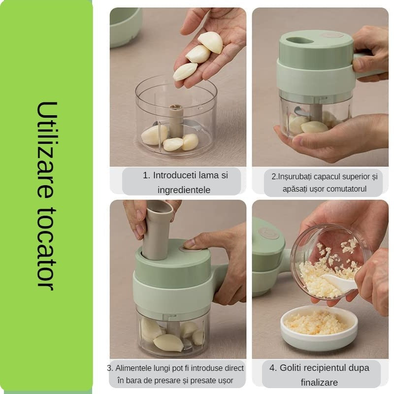 Tocător Electric Multifuncțional 4 în 1 – Rapid, Compact și Ușor de Folosit
