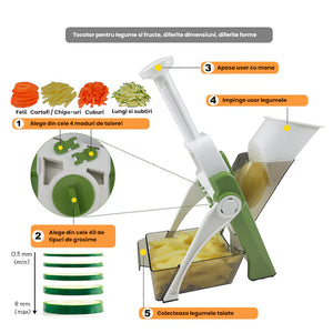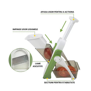 Tocator și Feliator Fructe și Legume 2-în-1, 40 grosimi reglabil, cu vas colector și sistem de siguranță