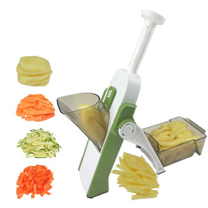 Tocatorul multifuncțional este un instrument practic pentru prepararea rapidă și sigură a ingredientelor. Conceput pentru uz casnic, permite reglarea grosimii în 40 de trepte și asigură o tăiere uniformă pentru fructe și legume.