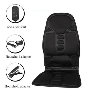 Topper scaun masaj cu vibrații și încălzire lombară – 5 moduri, 4 zone, controler manual, adaptor auto